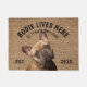 French Bulldog Personalised Dog lover welcome doormat. This welcome mat can be personalised with your dog’s name, the slogan can also be changed or you could use a picture of your own dog (make sure it's transparent). Text reads: Bodie lives here…. All treats welcome