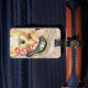 I was happy with the acrylic tag but it came with a thin leather strap to attach the tag to luggage (like a cat collar). I replaced the strap with a metal ring off of a key ring as the leather strap would come undone or break easily as luggage is sometimes handled without much care by airlines. Printing is great. Colours and positioning of the design I put on the tag were perfect. Very pleased.