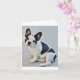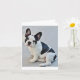 This cute notecard features an image of a black and white French Bulldog highlighted against a creamy grey background.