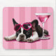 Gorgeous french bulldog puppy and pink cocktail, painted by artist Maryline Cazenave.