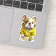 sticker expresses elegance and distinction, as the dog wears a distinctive bright yellow sports suit, which makes it look modern and attractive. This poster can be interpreted as the dog representing elegance and self-confidence, which is what makes it a famous slogan in the world of art and fashion.