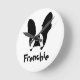 Clock template ideal for dog care, dog walking, dog sitting, pet photographer services. The modern design shows french bulldog head.