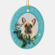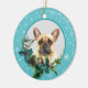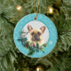 French Bulldog Snowflake Blue Frame Bouquet Ceramic Ornament