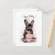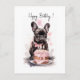 Black cute french bulldog with pink birthday cake and pink bow Postcard