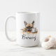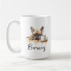A morning coffee mug with a french bulldog with custom name in script style. "May your Coffe be stronger than your dog's Attitude" is written on the back. Perfect gift for dog owners that have a dog with an attitude and also love coffee.