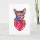 French Bulldog with red heart colourful Card
