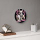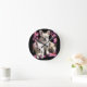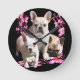 French bulldog with three bulldoggs in pink round clock