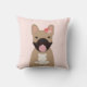 French Bulldogs Smiling Flowers Pink Cushion