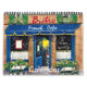 Charming watercolor paintings of French Cafes are on each month of this calendar.