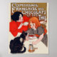 Compagnie Francaise des Chocolat et des Thes, or French Chocolate and Tea Company. This is a beautiful chocolate image of a mother, child, and lovely cat sitting at the table having a chocolate party. This chocolate party is very French, very Art Nouveau. The chocolate poster is in rich browns and reds, just perfect colors for chocolate lovers. The mommy is sipping from her chocolate cup, while the little girl is just starting to take a taste of cocoa from her spoon. The girl is watching her kitty, who is sitting on the table watching the whole chocolate party. About Compagnie Francaise des Chocolat et des Thes - The poster was created by Swiss artist Theophile Alexandre Steinlen in 1898, high time for beautiful Art Nouveau posters in Paris. Steinlen's trademark was cats, but he was also known for his wonderful images of cabarets performers and hundreds of magazine illustrations depicting everyday Parisian life. He lived in the avant-garde Montmartre section of Paris, and he and other artists including Toulouse Lautrec developed the Art Nouveau style.