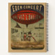 French circus poster shows two performers in the basket of an airship navigated by a rudder and a propeller. The basket bears the date 1884.