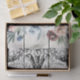 Cute, Hampshire ewe and her kid behind a pink floral bouquet. Farmhouse country, vintage, victorian, lettering signage on a worn, white, wooden board background. Perfect for a rustic farmhouse or french country vibe, especially doing decoupage crafts.