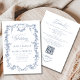 Create an elegant first impression with this All In One Victorian Dusty Blue QR Code Wedding Invitation. Featuring vintage-inspired Victorian detailing and a soft dusty blue colour palette, this invitation blends timeless romance with modern functionality. The built-in QR code allows guests to easily access your wedding website, RSVP form, or registry. Ideal for formal, romantic, or traditional weddings, this all-in-one design keeps everything beautifully organised in a single stylish card.