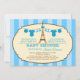 Modern and eye-catching baby shower invitation ideal for a mum-to-be expecting twin boys. Features a pair of clothing lines with baby cloths hanging from the Eiffel Tower. An ornate frame encloses all the details. A stripes pattern background adds a sophisticated touch. Trendy and chic colour palette. Add your own wording.