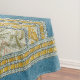 This elegant tablecloth appears to the eye to have been woven and embroidered in the manner of a tapestry; it is, in fact, a very convincing reproduction of French fabric with a delicate central floral motif surrounded on all sides by bold turquoise and gold borders. Mix and match with other home furnishings featuring variations of the same design.