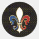 French Flag Fleur de Lis with Gold Classic Round Sticker