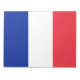 This design features the national flag of France (officially the French Republic, République française), which is a country consisting of metropolitan France in Western Europe and several overseas regions and territories. The metropolitan area of France extends from the Mediterranean Sea to the English Channel and the North Sea, and from the Rhine to the Atlantic Ocean. It borders Belgium, Luxembourg and Germany to the northeast, Switzerland, Monaco, and Italy to the east, and Andorra and Spain to the south. The overseas territories include French Guiana in South America and several islands in the Atlantic, Pacific and Indian oceans. The capital city of France is Paris, while some other major cities are Lyon (or Lyons), Marseille (or Marseilles), Toulouse, Bordeaux, Nice, Nantes, Montpellier, Strasbourg and Lille. The flag of France (drapeau français) is a tricolour flag featuring three vertical bands of blue, white and red.