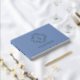 Moemorable and elegant wedding guest book. This lovely french style wedding guest book in foil, features a lovely set of contemporary fonts and floral couple monogram, against an attractive dusty blue background.