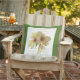 French words of love and two blossoms on a patio pillow made for outdoor use. The background colour can be changed to match your decor.