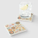 The coasters are gorgeous, a quality feel and heavy weight. They look like a precious archeological find. A rustic stone juxtaposed with a modern floral black and white print. I like the way the print goes slightly imperfect on the cut stone edges giving them a kind-of natural beauty.