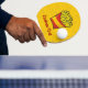French fries icon. Junk food outline icons yellow pattern background. Custom text.
