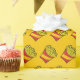 Cartoon illustration of small pack of french fries. Seamless pattern. Custom background colour.