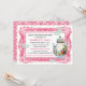 French Garden Bridal Tea Party Invitations on the front feature a pretty vintage French frame in pink, mint butterflies, and an antique teapot adorned with roses. The back has a damask pattern in pink.