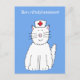 A large cartoon fluffy white cat with a nurses hat on, set against a blue background and the words 'Bon rétablissement' (French get well soon card) accompanying the image.