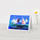 A Birthday Card with 'Happy Birthday' in French, with a seascape with yachts, from a handpainted paper collage by Judy Adamson. The inside is left blank for your own message and if you would like the front cover text changed, please contact me through my store.