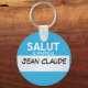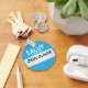 This customisable product features a blue "Hello My Name Is ..." name tag sticker in French.