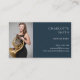 Modern and elegant custom photo navy blue business cards designed for professional french horn players, bassoonists, oboists, flautists and other concert musicians. Customise them with your own promotional photos and details. You can also use the editing tool to adjust font size, style and position according to preferences.