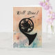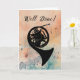 Bold and beautifully expressive, this congratulatory design showcases the distinctive shape of a French horn in black silhouette, set against a sweeping watercolor backdrop in orange and teal. Curved musical staff lines and notes suggest the rich, resonant tones of a horn performance. “Well Done!” appears in a stylish handwritten script, making this a memorable way to acknowledge a student or performer after a recital, concert, or solo.