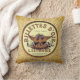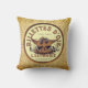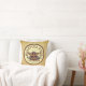 Throw pillow with vintage French labels against a vintage beige design.