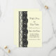 One on the newest trends in fashion and design is lace. It is shown here in a chic, new and modern way. This save the date is part of the full wedding line, French Lace and is available in other colour combinations. It is illustrated here on the basic paper; however, I recommend the texture of the linen paper, or the satiny shimmer of the metallic champagne paper.