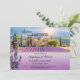 Romantic Wedding Save the Date Card featuring a painting of lavender farm at sunset. On the back is space for your own photo. A QR code template is added for your convenience. Beautiful for a lavender themed wedding or a French style country side celebration.