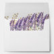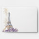 Romantic and elegant, Paris themed envelope with a watercolor illustration of the Eiffel Tower. The design is decorated with French Lavender and finely sketched gold flowers.