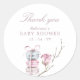 Bonjour Bébé! This charming watercolor stickers features a soft pastel blue and pink macarons tied with a sweet bow, and elegant fonts, this design sets the tone for a stylish French-inspired party. The text "thank you" is in a elegant style Ideal for a baby shower theme that’s both romantic and chic.
