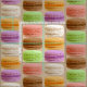 Fabric adorned with elegant French macarons in multiple pastel colours and flavours on beige, or your choice of background colours - mixed media digital art