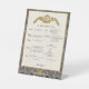 in tones of taupe, black and cream with the appearance of gilded accents our durable pedestal sign design contains authentic items of fine cuisine from a real French Menu. Makes a decoratively 'tasteful' French accent to place on your dining room sideboard, or display this French menu on the tabletop, to give a cosy table-for-two the look of a chic French bistro. Just add candlelight! This sign is equally at home in an elegant Paris-style-decor studio apartment or a casual French Farmhouse decorator scheme – but it's sleek design would suit a contemporary dining setting, as well. Find this French Menu print also on our folded tent-card to display on the tabletop. There's also an easy-care magnetic card version to use as refrigerator art. This design is additionally available as an 8" x 10" frameable card stock print to hang in your kitchen or on the wall of your dining space.