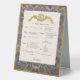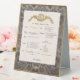 in tones of taupe, black and cream with the appearance of gilded accents our table tent sign design contains authentic items of fine cuisine from a real French Menu. Makes a decoratively 'tasteful' French accent to place on your dining room sideboard, or display this French menu on the tabletop, to create a cosy table-for-two look from a chic French bistro. Just add candlelight! This sign is equally at home in an elegant Paris-style-décor studio apartment or a casual French Farmhouse decorating scheme – but it's sleek design would suit a contemporary dining setting, as well. Find this French Menu print also on our durable pedestal sign option for the tabletop. There's also an easy-care magnetic card version to use as refrigerator art. This design is additionally available as an 8" x 10" frameable card stock print to hang in your kitchen or on the wall of your dining space.