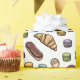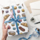 An assortment of tasty French pastries scatters across this scrumptious looking dessert themed wrapping paper. Macarons in pastel pink, purple, blue, green and yellow dance among sugared madeleines (little butter cakes), mille-feuilles (custard slices), chocolate eclairs and puffy croissants. So sweet it looks edible! The background color can be changed. Perfect for aspiring bakers and all who answer the call of their sweet tooth!