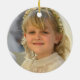 This Personalised First Communion commemorative ornament features elegant French copperplate calligraphy style swirls and scrolls in the background, script flourishes, a bracket shaped frame and a beautiful hand painted ribbon look pink bow, with French ruched style satin lace border. In a subtle, sophisticated palette of soft dove grey and pastel blush pink. All made from original, hand painted watercolor artwork by Audrey Jeanne Roberts. The result is a beautifully modern and contemporary Baby ensemble. On the reverse side is a place for your little girl's photo. You can easily add your own picture or change the messages.