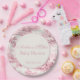 French Pink Toile Floral Bow Baby Girl Shower Paper Plate