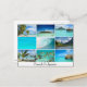 Postcard with a collage of multiple images of the beaches of the islands of French Polynesia, like Tahiti, Moorea, Bora Bora and Rangiroa with a white bar with the text: 'French Polynesia'.