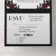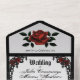 Elegant look of iron fencing frames and dark red roses on a silver invitation with unique script. The RSVP return has two candelabra and custom deliver to text. Change the text for what you need. If you need any help just message me.