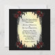 Amazingly beautiful and unique gothic / Victorian design wedding invitation. An iron scrolled rose ensconced frame complete with black candelabra. This is just one of the colours available for an antique gold colour scheme. Add the name of bride and groom on back along with the date.
