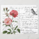 Vintage handwritten script from an old French postcard is combined with a rose illustration and a hand-drawn bird for this one of a kind decoupage or scrapbook paper.