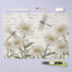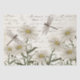 A dragonfly and friend investigate a field of daisy wildflowers with French script on a parchment paper background in this vintage collage. Larger size for bigger decoupage projects. Colour version.