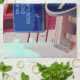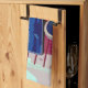 The bold, colourful artwork on this Kitchen Towel is an original photograph by ZoeSPEAK, taken on a street corner in Biarritz, France. The blue sign with white letters, "Rue des Goelands", is the street name (in English, "Sea Gull Street". The round, marine blue sign with a white arrow is a directional sign. The red circle with a backslash, on a dark blue background, indicates "Do Not Enter". Behind the signs is a white building with dark red trim, an example of Basque architecture. A splash of sunlight in one corner of the house highlights the red of the shutters.