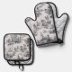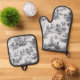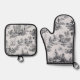 French toile de jouy black and white elegant oven mitt & pot holder set